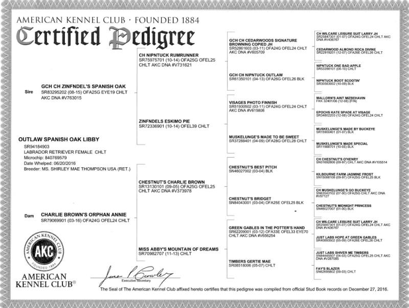 | Libby's Sire: MULTI BISS CH Zinfndel's Spanish Oak - 'Timber' |