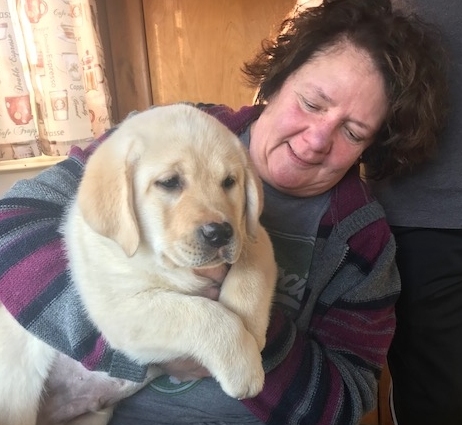Terri with Bernie, a Zoey x Bentley puppy | January 2019