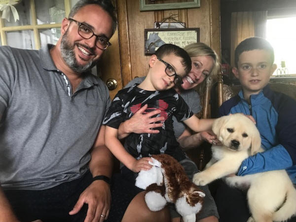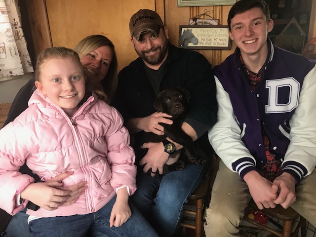 Tucker, with Avery, Megan, Tom & Ryan, a Libby x Clay puppy | February 2019