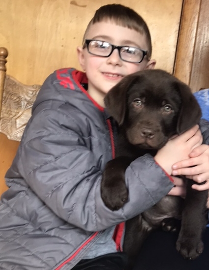 Hunter, with Brownie, a Libby x Clay puppy | February 2019
